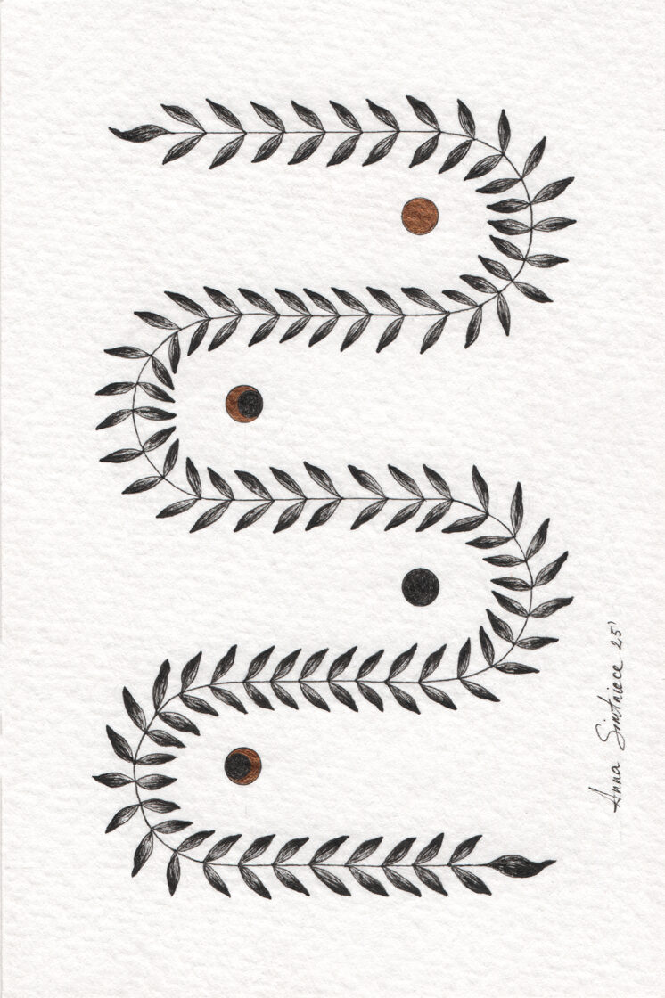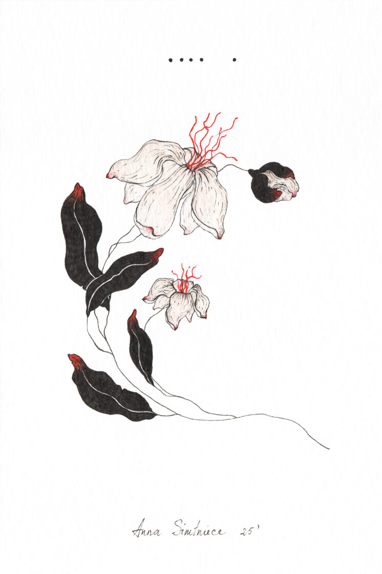 “Little Stories” grafiku sērija ir kluss dialogs ar sevi — ar savām vērtībām, prioritātēm un iekšējo pasauli. Tā ir arī saruna par raksturu, kas atklājas caur ziedu simboliku. Darbi ir smalki, trausli un simboliski.